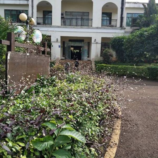 ...所以没有一家店面开门,文化馆门口有两株咖啡树,和兴隆农场比起来真是差远了,不过小孩子倒是很新奇