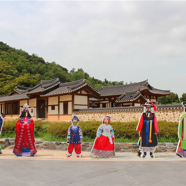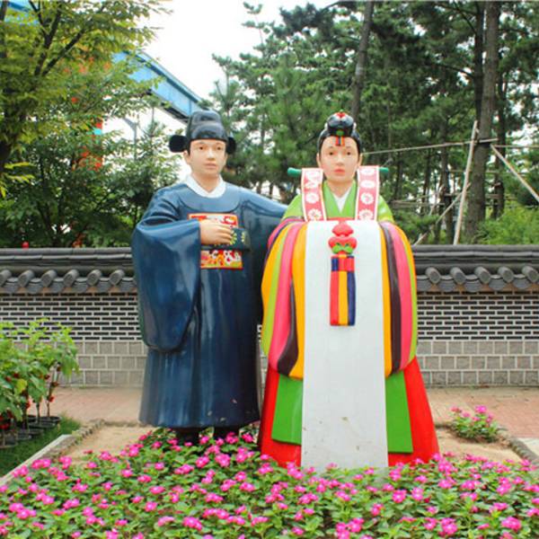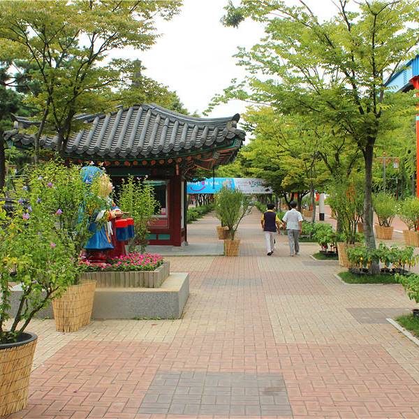 韩式庭院的展示场——月尾传统庭院(월미전통정원)内是按照朝鲜时期传统庭院的样式精心仿建的,庭院内部可随便进去体验真实的传统韩屋。