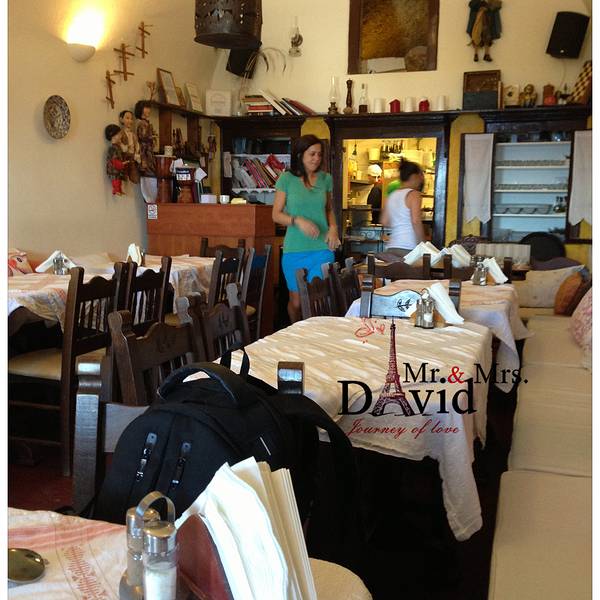 Metaxi就在这栋建筑后面,顺着小路走就到了,比较隐蔽,俗话说好酒不怕巷子深,大概就是这样的情况了。去黑沙滩那天来踩了点,当时没到2点他们还没营业,今天两点半外面已经坐满了,服务员询问我有没有预定,我说没有,他说那只能坐里面了。里面外面我倒是无所谓,环境都挺好的。 不得不说,不愧是镇岛餐厅,和之前吃的希腊菜完全不一样,颠覆了我对于希腊菜只有煎炸烤的印象。章鱼腿很Q,搭配细腻的土豆泥,其妙的组合。牛排很厚实,但却化渣,酱汁是咸甜口味的,很特别。后来感觉意犹未尽,又点了一份鸡肉,口感居然像是混合了韩国泡菜!吃到久违的辣味,把我感动的!价格不算平价,三个菜41欧。总之,有机会一定要去吃这家。