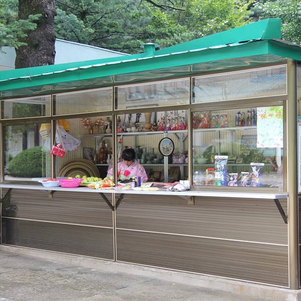 寺庙也是一个个的小房子,建筑有朝鲜特色,屋顶的雕刻精致、丹青鲜艳。和一般的中国小寺庙很类似妙香山下的一个寺庙,是朝鲜少量寺庙之一