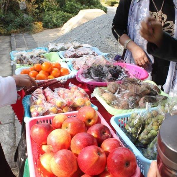 5块钱一袋,是小猕猴桃哦,十分袖珍,吃着很不过瘾。看到我们意兴阑珊的样子,导游似乎有些意外与失望随后导游带领我们来到距离国际友谊展览馆10分钟车程的普贤寺。