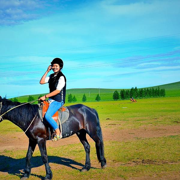 绿色一望无际,蓝天触手可及,随着马背的颠簸,感受迎面扑来的夹杂着青草香的风,是多么惬意而又放松在呼伦贝尔,无论大小市镇,还是各个草原上的旅游景点,都可以骑上骏马,驰骋于广袤的大草原上。绿色一望无际,蓝天触手可及,随着马背的颠簸,感受迎面扑来的夹杂着青草香的风,是多么惬意而又放松。一般景点处...在呼伦贝尔,无论大小市镇,还是各个草原上的旅游景点,都可以骑上骏马,驰骋于广袤的大草原上。绿色一望无际,蓝天触手可及,随着马背的颠簸,感受迎面扑来的夹杂着青草香的风,是多么惬意而又放松。一般景点处是50元一小圈,大概10分钟左右,100元一大圈,大概20多分钟。 展开