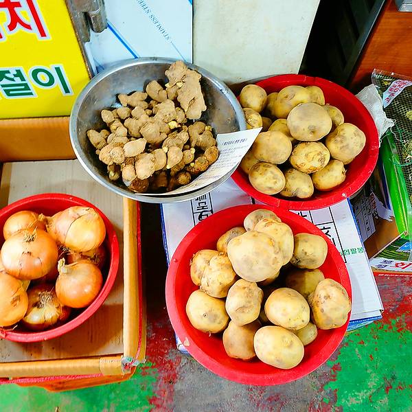 想要买江华最地道的本地特色物品或者食物,来江华风物市场绝对没错。出了日常用品以外,这里有些摊位还有本地的小食品可以买,比如本土做法的桃酥饼,苏子饼之类的,除了这些还有江华岛有名的蒿子叶、海鲜可以买~ 质地还很新鲜!