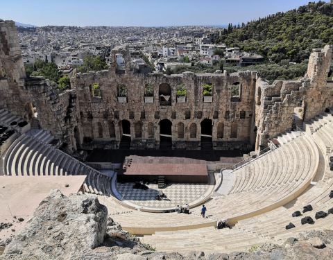 ...一个礼物,整个剧场规模还挺宏大的,依山势而修建位于半山腰上面,直到今天这里还是会时不时的有演出这是当时阿提库斯的富豪们送给雅典的一个礼物,整个剧场规模还挺宏大的,依山势而修建位于半山腰上面,直到今天这里还是会时不时的有演出。