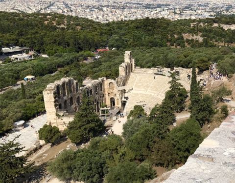 这个剧场是雅典非常古老的一个剧场,是以这个剧场的捐赠者而命名的,剧场位于一个高地之上,在这里也...这个剧场是雅典非常古老的一个剧场,是以这个剧场的捐赠者而命名的,剧场位于一个高地之上,在这里也可以看到大半个雅典城,规模很大。