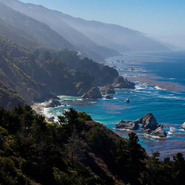大瑟尔有一个Pfeiffer Big Sur State Park(菲佛大瑟尔州立公园),起初以为紫色沙滩Pfeiffer Beach(菲佛沙滩)就在公园内,到入口处问了一下,说公园里没有沙滩,就没有买$10门票进去。在茂密森林中的公园游客中心无需买票就可以进入,这里有一间纪念品商店,还有咖啡厅和餐厅,旁边有一条徒步小径,可以在巨杉间穿梭。