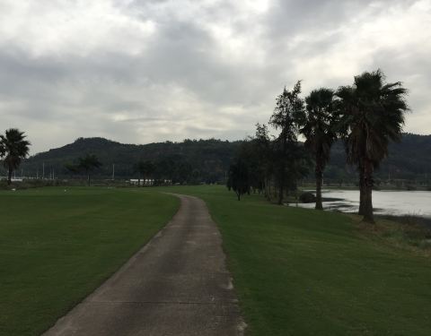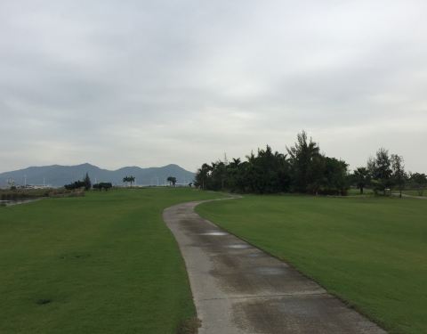 球场离澳门很近,一边打球还可以看到附近澳门市区景象,尤其电视塔高高耸立。球道比较窄,容易丢球,打起来有难度。果岭速度不算快。