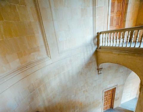 是一个环形的廊型建筑群,很宏伟,而且这是由当时托莱多著名的建筑师设计的,这个建筑修建于16世纪上半期这个宫殿是一个独立的建筑,是一个环形的廊型建筑群,很宏伟,而且这是由当时托莱多著名的建筑师设计的,这个建筑修建于16世纪上半期。