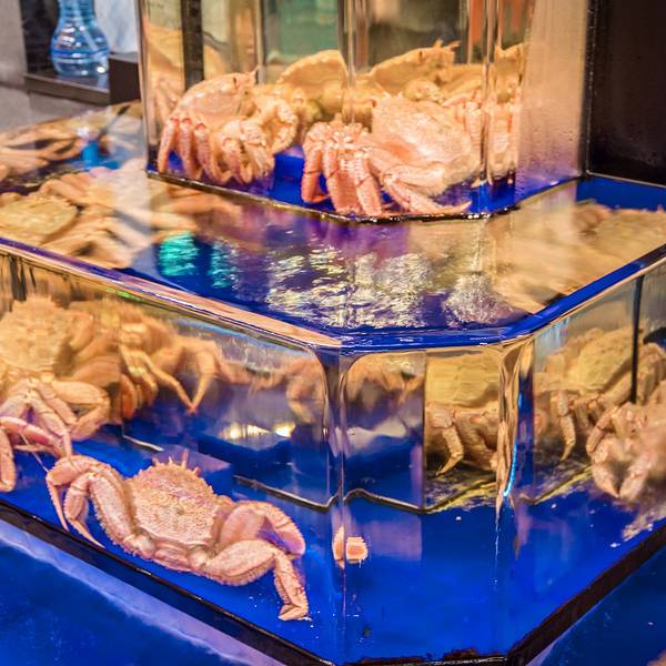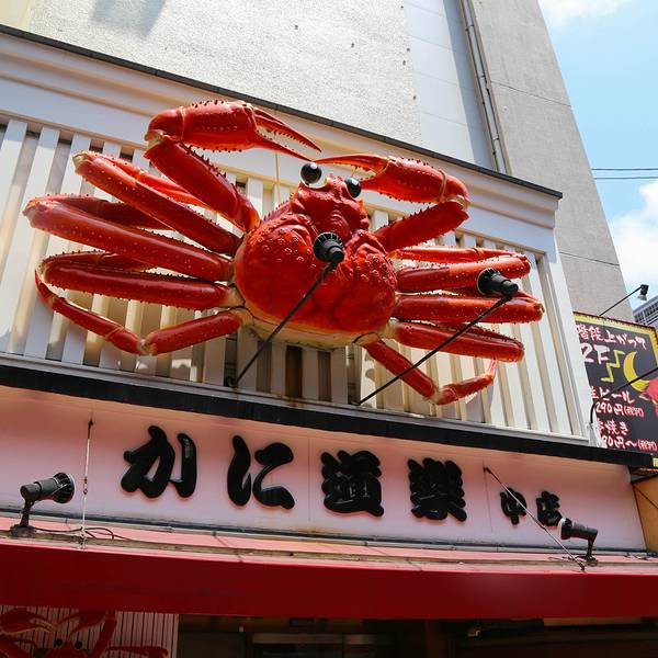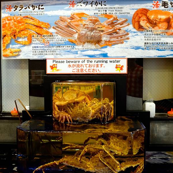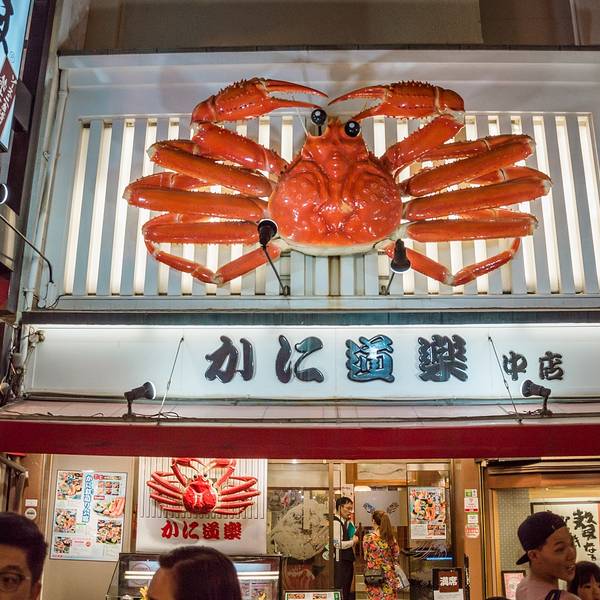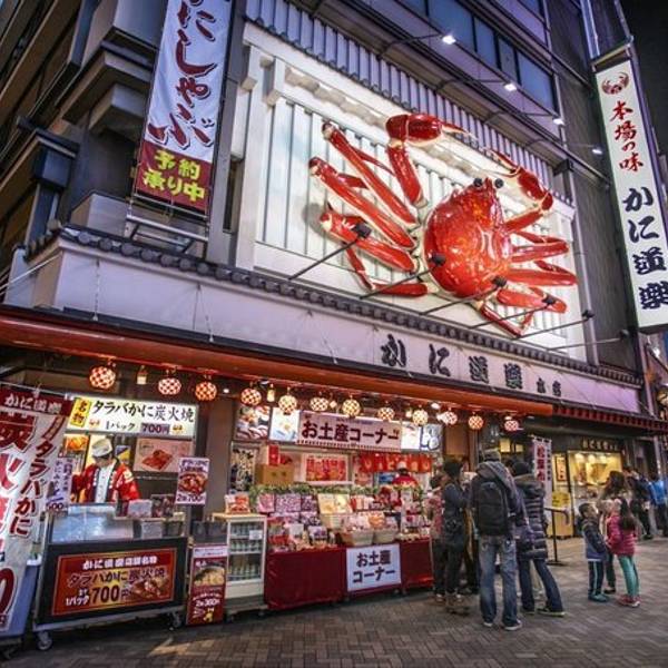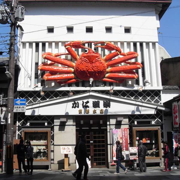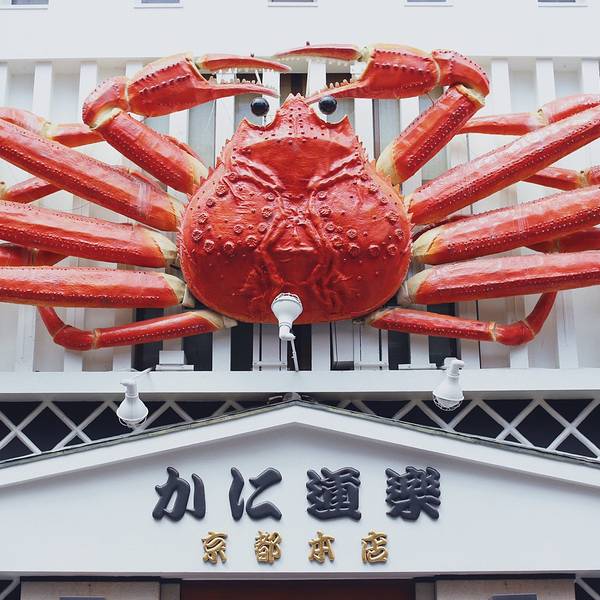 ·蟹道乐是日本蟹料理连锁名店,已有50年历史,店门口的大螃蟹模型是它的独特招牌。 ·店里主打一蟹多吃,一顿饭可体验到蒸、烤、焗、煮、炸、刺身等多种方法烹饪的螃蟹。 ·食材每日从产地直送京都,中午到下午四点之前都有优惠的午市套餐,最便宜的套餐约2400日元。 ·进店的每个人都需点一份餐,不可几人共点一份。
