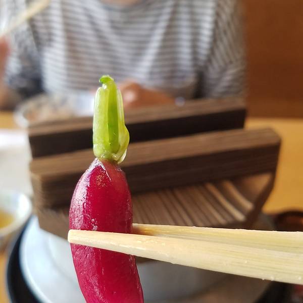 如果不想品尝其他小吃的话,建议一人点一份套餐,食材新鲜,服务周到,味道的话嘛就见仁见智了,因为本人非常喜欢吃螃蟹,所以很对胃口。。。蟹肉饭很好吃!!因为套餐里有抹茶冰淇淋,抹茶是美丽的阿姨现磨制作。。。很卡哇伊的腌渍小菜,小黄瓜、小萝卜,颜色也那么正,又不舍得吃了✧٩(ˊωˋ*)و✧