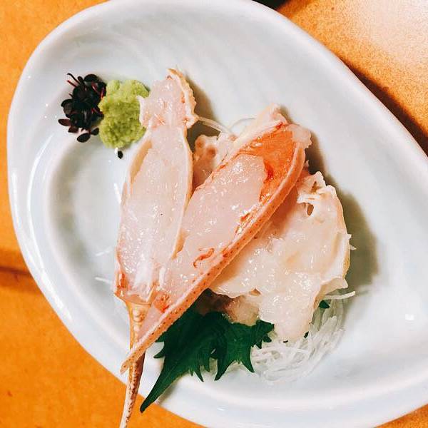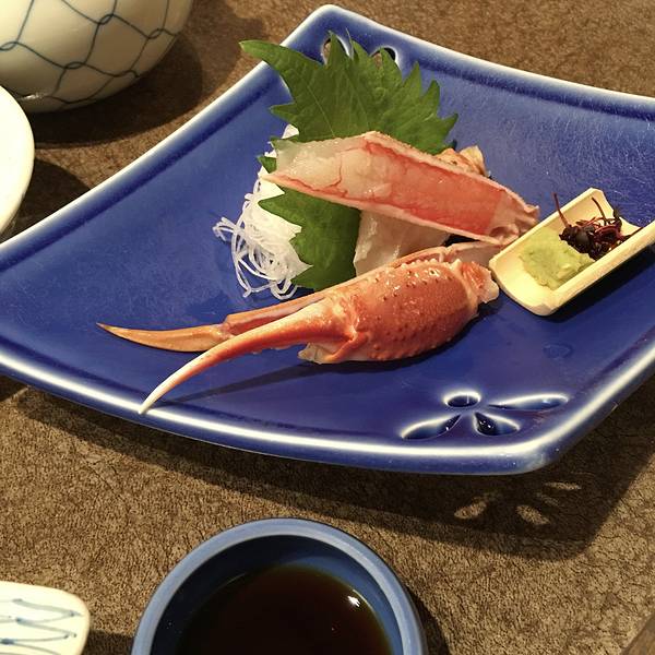 - 蟹脚刺身,也好吃~。肉质可厚实了~。吃完螃蟹,一路慢慢散步回家,愉快的一天结束了~。又是烤蟹脚