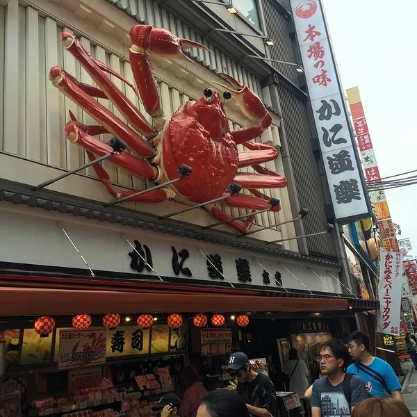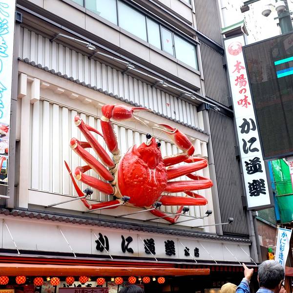 道顿堀地标性的招牌是料理名店“蟹道乐”门口悬挂着的大螃蟹。哇卡卡卡卡~旅行嘛,就应该这样,多品尝品尝当地的美食,跑来跑去多累,是吧?来~吃吃吃~~点了全蟹宴~