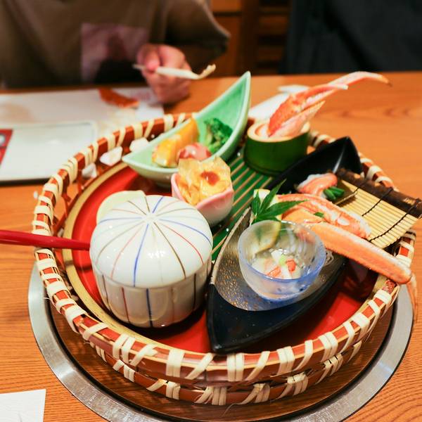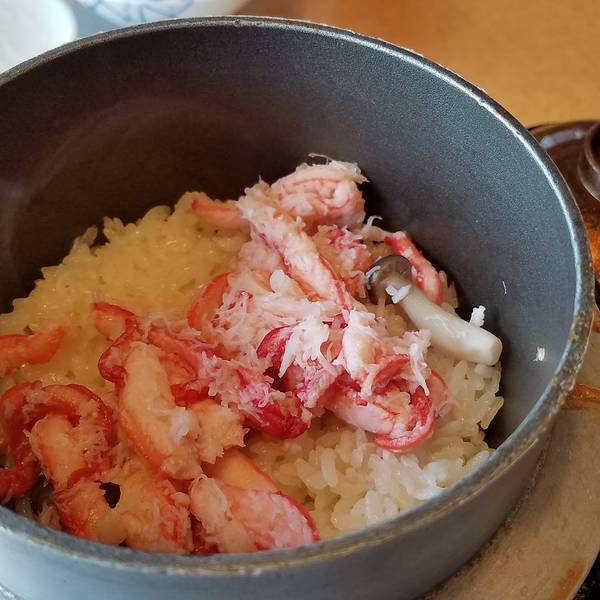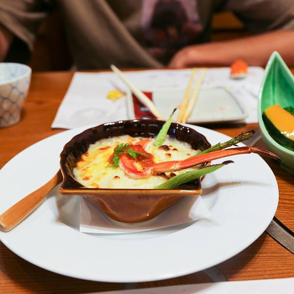 虽然我们没打算去吃蟹,但是还是忍不住要去感受一下这个服务啦~~点了个貌似很不错的套餐,吃的也确实很精致,但是最满意的还是套餐之外点的唐扬蟹肉,那叫一个肉质饱满。但是作为大连人,我回来之后十一吃的每一只都这么鲜嫩肥美~要说吃的是品质服务做法的话,其实尝尝也不错,不过确实不便宜,一顿两个人就10000日元了。