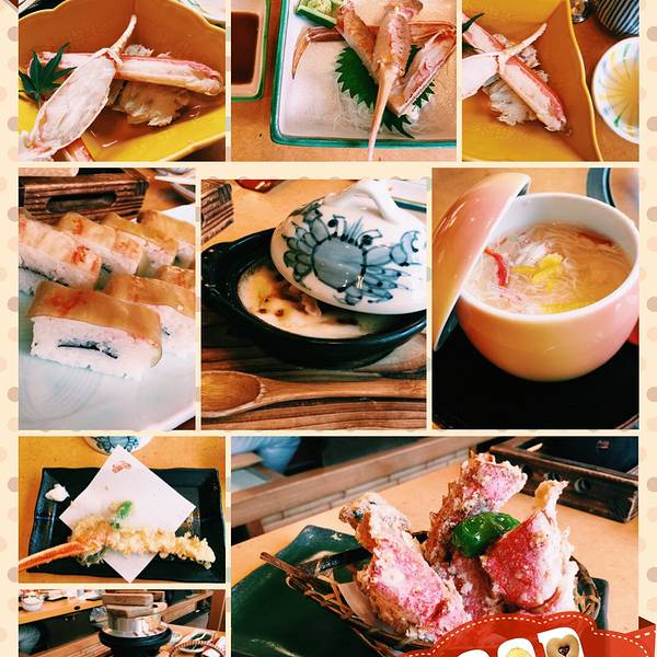 浪了一天,又到了激动人心的晚饭时间,我们去了三条那边的一家蟹道乐,点了两份套餐+其他若干食物,又吃了个心满意足~烤蟹脚蟹刺身用来涮的蟹腿们肉质可厚实了~蟹脚刺身,也好吃~蟹肉寿司另外一份套餐里的刺身...浪了一天,又到了激动人心的晚饭时间,我们去了三条那边的一家蟹道乐,点了两份套餐+其他若干食物,又吃了个心满意足~烤蟹脚蟹刺身用来涮的蟹腿们肉质可厚实了~蟹脚刺身,也好吃~蟹肉寿司另外一份套餐里的刺身蟹黄豆腐蟹膏啥的~又是烤蟹脚天妇罗最后涮涮锅里来碗蟹泡饭~鲜的嘞~吃完螃蟹,一路慢慢散步回家,愉快的一天结束了~