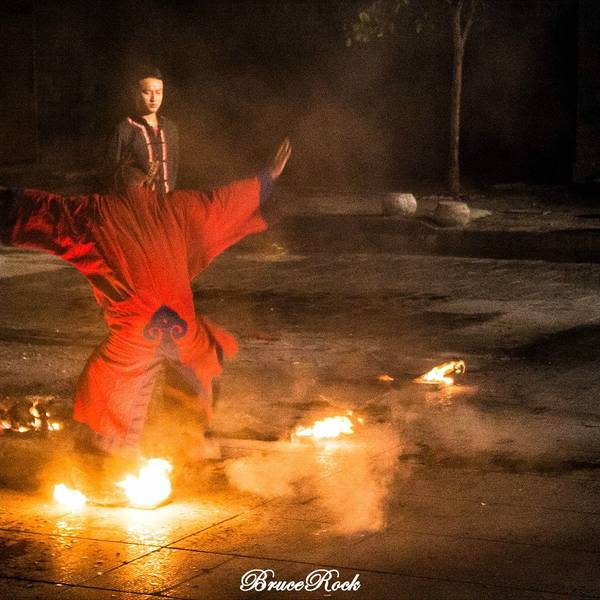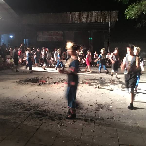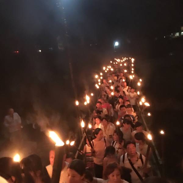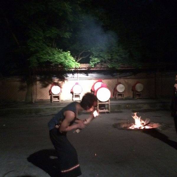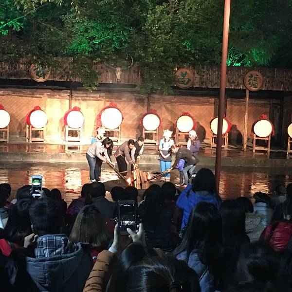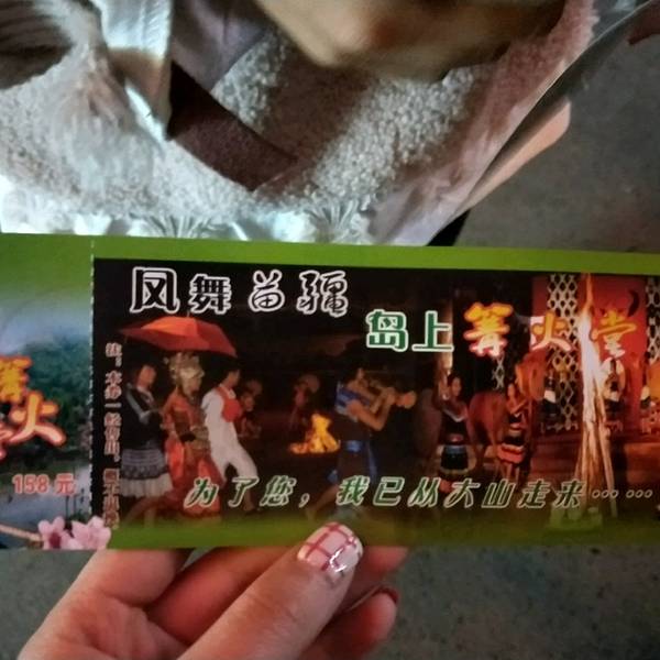 一起互动很好玩。来的时候给了火把给我们,好好玩,到了舞台,刚开始,在跳竹竿舞。还是蛮美好的回忆原本打算明晚再去看篝火晚会,谁知古城这么小一下子就逛完了..那就今晚就看篝火晚会吧~马上向客栈老板订票,35块钱,不贵不便宜,当然能更便宜的买到,不过无所谓了~一路认识了景德镇一个人来凤凰的鹏哥萌妹纸~萌萌哒