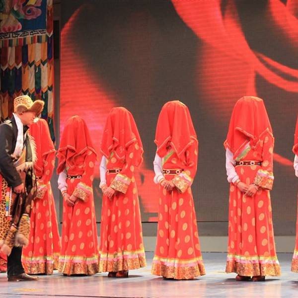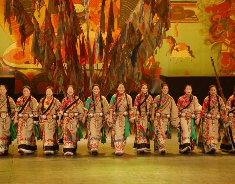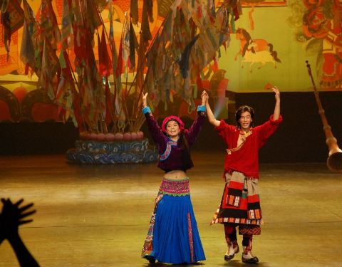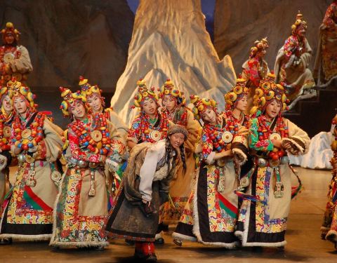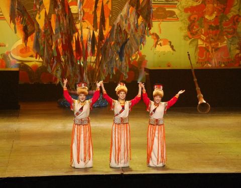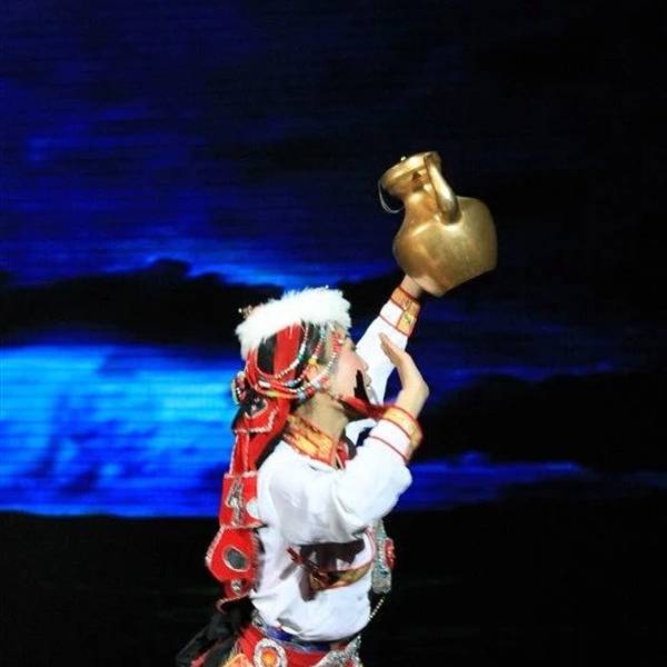 主持人介绍说这是张艺谋导演的晚会,貌似张导导演了很多晚会啊,像是丽江玉龙雪山上的那个晚会也是张导导的……时间持续了2个小时,主要演出了关于藏羌两个民族的传统文化。藏舞、羌笛肯定是有的,还有演出一些藏族娶嫁的小环节,邀请观众一起上去互动,蛮有趣的。但之前在牟托羌寨的时候,有看到过羌笛,也有听过,所以反而觉得藏羌晚会上的羌笛一般般啦。Plus,不得不说演出者都是美女啊,因为是少数民族所以立体感很强,妆略浓,但掩不住美丽,不像是羌寨里的演出,大部分是少数民族的中年妇女们,十分接地气……当然青稞酒的制作什么的,也以舞蹈的形式演绎出来了。