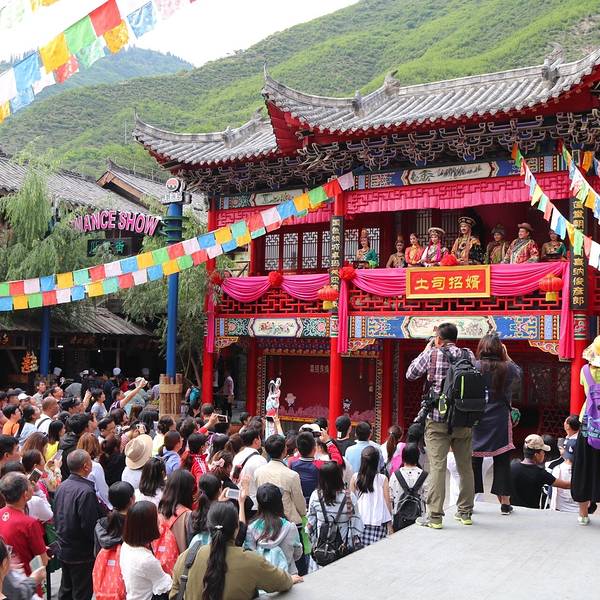 在景区内体验原汁原味的藏羌风情,观看大型歌舞《九寨千古情》。