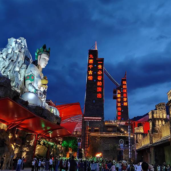 九寨千古情景区是九寨大型主题公园,是一座活着的藏羌古城,是九寨的城市中心和夜游理想目的地 旅游...九寨千古情景区是九寨大型主题公园,是一座活着的藏羌古城,是九寨的城市中心和夜游理想目的地 旅游区毗邻九寨沟景区,地理环境优越。