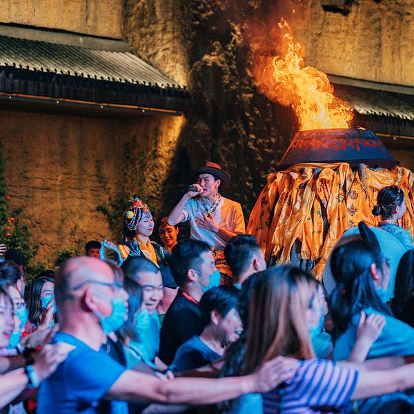 小哥哥小姐姐们穿上传统服饰,热情的邀请现场的朋友们加入其中,大家围着篝火,伴着欢快的音乐开启一段狂欢之旅。尽情释放着夏日的激情!TIPS