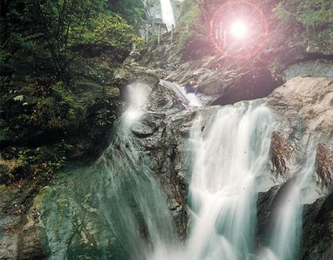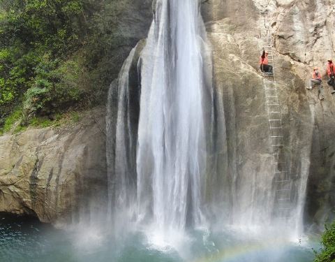 山上有个小型水库,所以沿途有不少瀑布,山顶有滑道可下,能省不少体力。