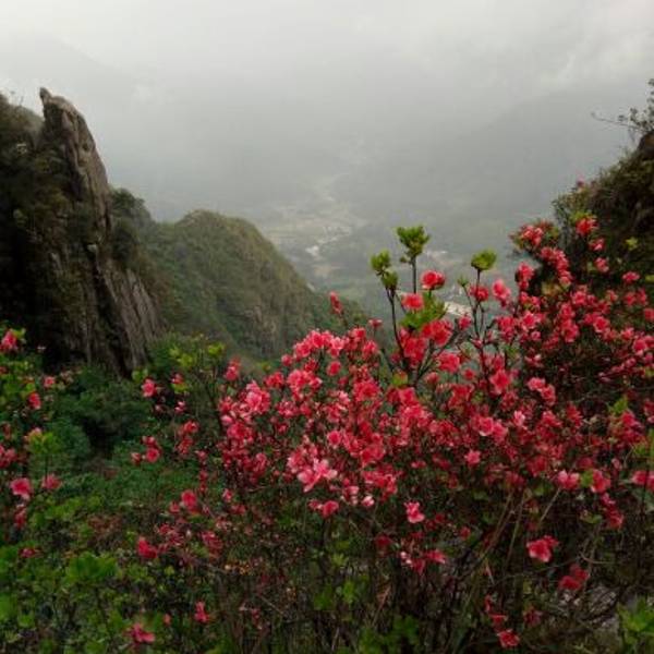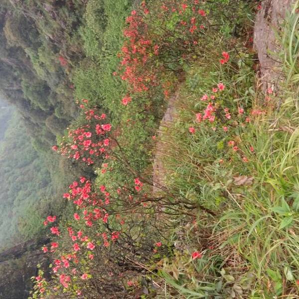 五四去的金子山,石榴花开满山顶景色迷人清风吹拂迷雾朦胧,一览众山小