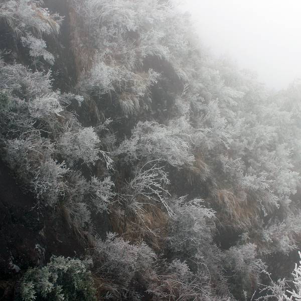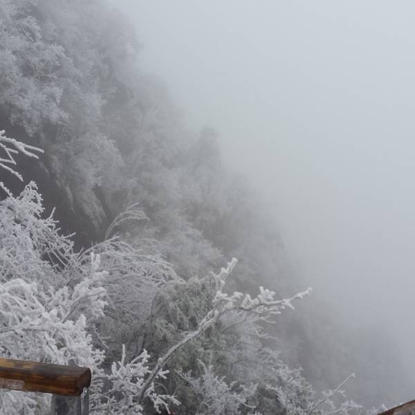 有小朋友没能上山顶,走人工梯到童子拜芙蓉的平台上玩冰和堆...2018年1月31日12点左右登山,停车场气温约0度,有冰挂。路面有薄冰。半山温度约-3度