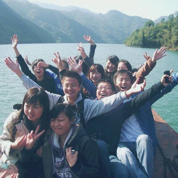 我们在门口合影,剩下的只需交给班长。坐上中型船出发了,四十多人分了两船前进,