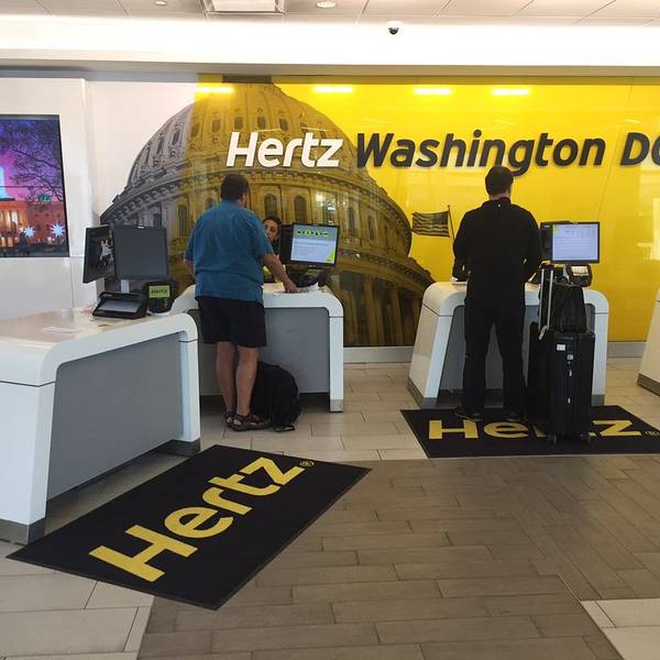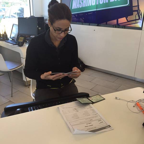 最快速度的离开机场,坐着Hertz的免费摆渡大巴车来到了租车公司的提车点,话说Hertz的服务相当不错,黑人司机大叔还帮忙把行李拿上拿下的,很是贴心,车行五分钟左右就到了Hertz在杜勒斯机场的取车点,很大很宽敞的一间租车门店。在这里等待坐租车公司的免费摆渡车Hertz的摆渡车还蛮漂亮的等待办理手续中,每个工作人员负责不同客人
