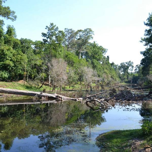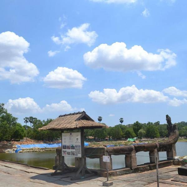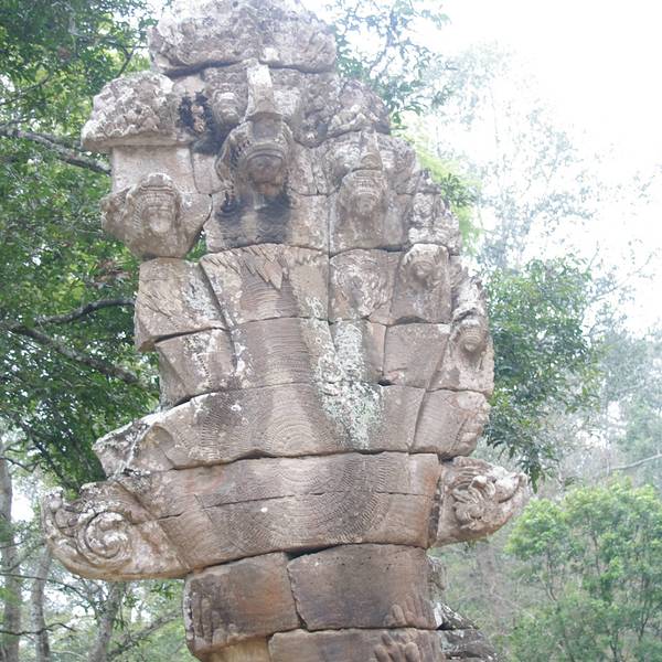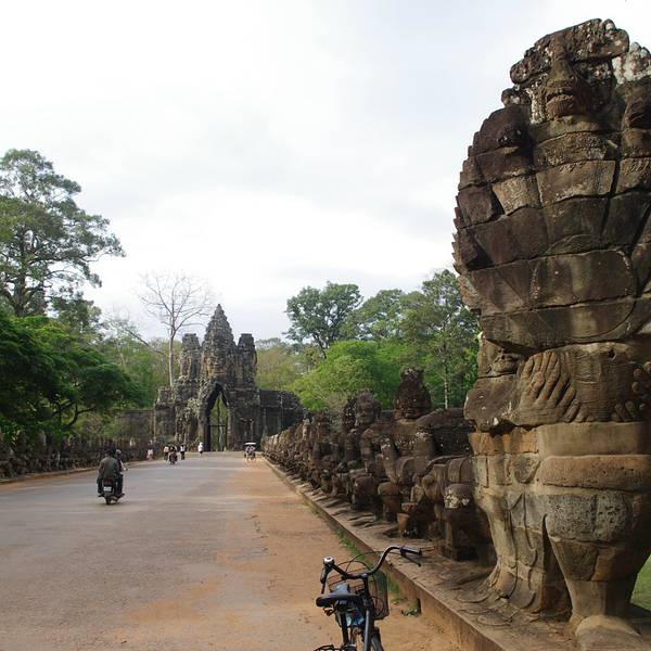 现在一般坐车进入吴哥城都从胜利之门进,过了城门有做石桥,桥下的沼泽很漂亮。城门的四面佛也是吴哥古迹的标志,很适合游客拍照