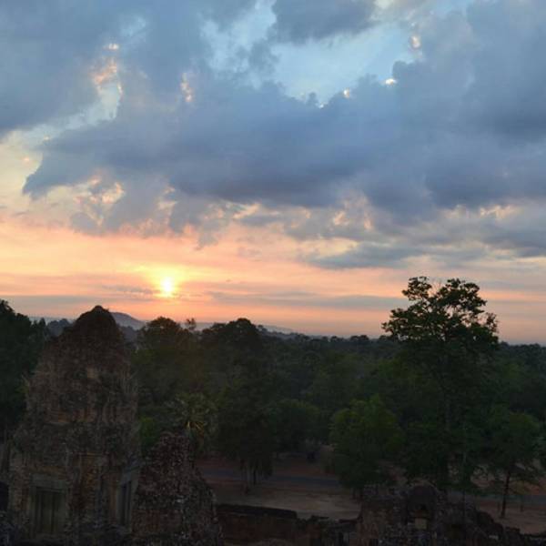 四点的闹钟急促的想起来,睁开睡眼惺忪的双眼,十分不情愿的把自己从床上拖起,果然为了去吴哥看日出蛮拼的