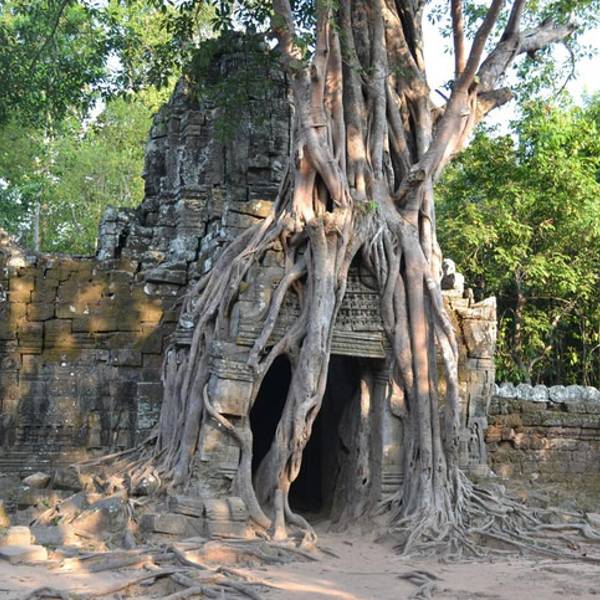 【开放时间】吴哥窟售票时间为5:00-17:30,早上观看日出而未购票的游客不用担心购票问题。【游玩时间】10分钟 【适合的旅游时间】11月至2月,如果雨季的话地面太泥泞 【地址】吴哥窟景区内,全城有5道城门,除东南西北四个城门外,还有东门北侧的胜利门直通王宫,东门曾为《古墓丽影》的取景地【交通方式】包车或tuktuk或自己骑车 【费用】一日票20美元。 三日票40美元,可选择连续三天或一周内任意三天参观。 七日票60美元,可选择连续七天或一个月内任意七天参观。 买票时当场拍照,照片会印在自己的门票上。每天下午17:00开始卖第二天的门票,买好门票后即可进入景区,门票期限从第二天开始计算。持门票可以参观所有位于暹粒地区的吴哥古迹,但不包括崩密列、荔枝山(Phnom Kulen)和洞里萨湖上的参观项目。景区内随时会有管理人员查票,一旦发现无票者要罚80美元。门票丢失不补。【特色推荐】树与寺庙相伴而生【环境评价】古老但破败,沙土比较多,虫子也比较多【注意事项】 【1.周边住宿】镇上住宿极多亦不贵,景区里面无法住 【2.美食】价格是外面的3-10倍,酌情带食物,不过就算10倍也没100块,不好吃就是了。 【3.服装】毕竟是寺庙,不要太清凉【4.适宜人群】稍有体力的人群,一般游览时间为一整天,步行为主,有些路段不好走 去过若干次吴哥窟,所以这些地方也会停下来拍照。而且是不同的城门,不过大家注意到的多半是大小吴哥那个方向的城门。相对于吴哥窟的各个寺庙而言,城门是逊色多了,很多都还没有补好,所以可能都不太会停留。城门两边是石像抱着两条那加粗壮的身子,人少的时候拍一张空旷的照片就好了,人一多就没意思了。 四个方向的四个城门,都有不同的景象,但是没有必要都去探索一遍,随意停留下拍拍照就好了,自己租车那是一定会停的,导游就不一定了,但是大家可以尝试一下。不过吴哥窟非常大,错过这里也不用太可惜,我一般都是自己骑自行车然后莫名就到了。 丛林里还有一些野生动物,所以天黑了可能就跑出来。早上倒是没有什么,最多也就看个日出,但是其他任何时间,整个吴哥窟看起来都很不错。 值得再来的地方。