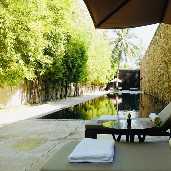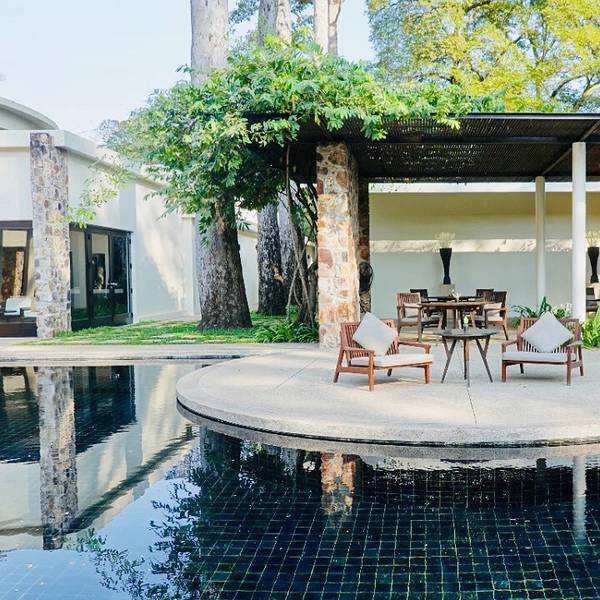 AMANSARA酒店与城市中心的夜生活区有一小段距离,若是搭乘TUK TUK10分钟的距离,立刻就褪去了城市的喧闹。 这里曾经是西哈努克亲王的行宫。 葱葱郁郁的竹林围墙下旁,一扇紧闭的黑色大门内,谁能想到居然是一座奢...