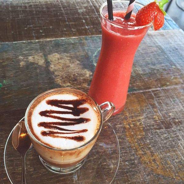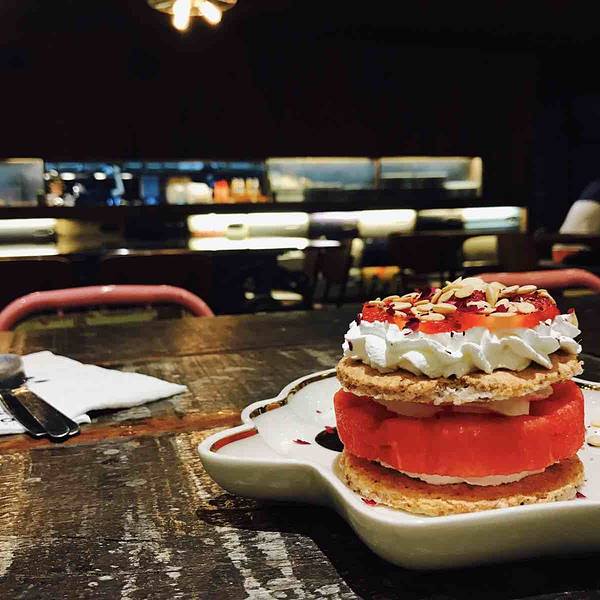 位于Think Park ,门口矗立着一只人人抢着跟它合照的大黑猫的Local Café,和夯店iberry一样都是泰国知名笑星Note Udom开设的。设计风格也是走潮流和搞怪的路线,还有利用回收旧物做成的装饰品,如车门拼贴成的吧台墙面和瓦斯桶吊灯,既环保又美观。像这样充满创意的亮点在Local Café还有很多,用餐之余还能享有发掘的乐趣。 而他们家的菜单也很别致,做得像一本杂志一样。料理方面感觉有点泰日混血,份量够,但味道一般。表现的比较出色的是甜点和冷饮,西瓜蛋糕是很杰出的一款创意甜点,西瓜、草莓、鲜奶油和南瓜子的组合,清甜爽口,是很特别的味蕾体验。