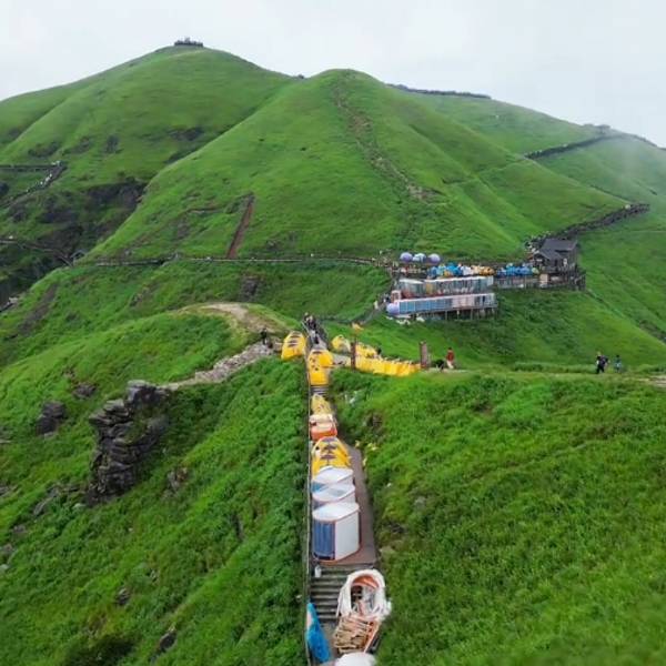 若爱云海与草甸,便去武功山。清晨的金顶,云海从山谷漫上来,裹着淡淡的雾气,风车在草甸上缓缓转动,仿佛闯入了童话世界。徒步在山脊线上,风拂过脸颊,脚下是柔软的青草,抬头是澄澈的蓝天——这一刻,你会懂何为“超脱尘世的自在”,何为属于自己的“齐天气魄”。