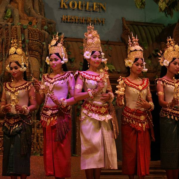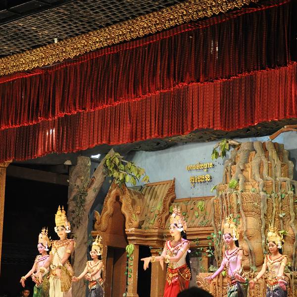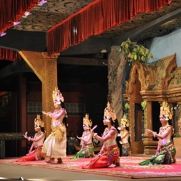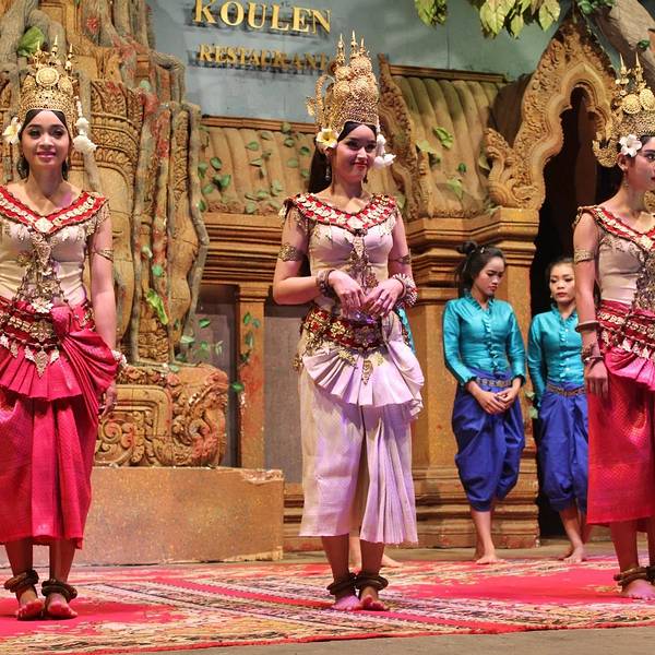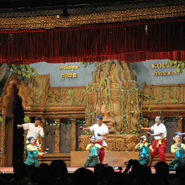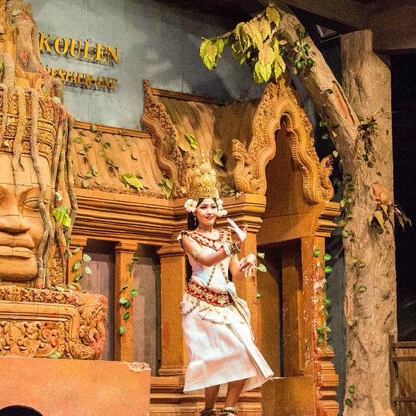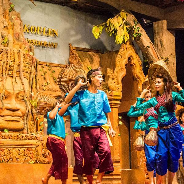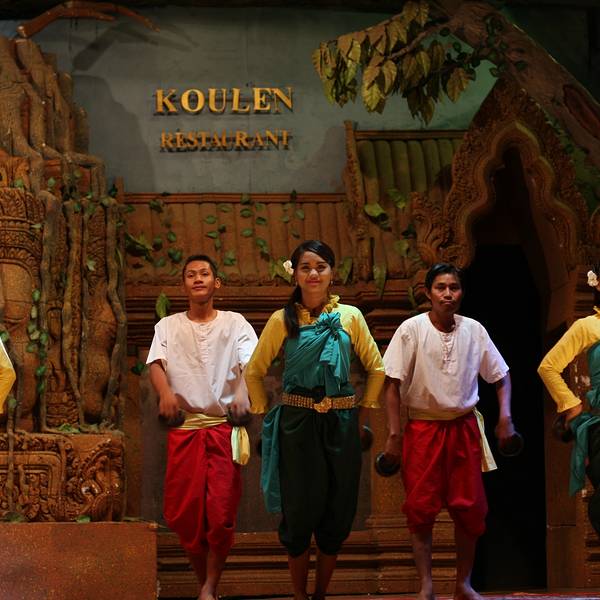 - ...舞蹈表演、以及柬埔寨民俗表演,有很多人到此用餐观看演出,因此必须提前订座才能得到比较靠前的位置