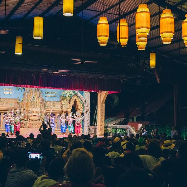 - 主要是冲它有柬埔寨歌舞表演和传统美食。Pete知道我要去这里,问我是否订好了位置,说非常多人