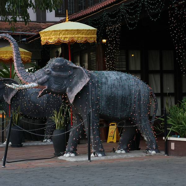 如果是第一次到暹粒的话,这里可以算是首选餐厅,晚餐时间段,7点半到8点半之间有传统舞蹈表演,位置的话,餐馆就在lucky mall的对面,马路旁边,门口有两只很显眼的大象,很好找。晚餐是自助餐性质,需要提前预...如果是第一次到暹粒的话,这里可以算是首选餐厅,晚餐时间段,7点半到8点半之间有传统舞蹈表演,位置的话,餐馆就在lucky mall的对面,马路旁边,门口有两只很显眼的大象,很好找。晚餐是自助餐性质,需要提前预定,每位12刀,不包括酒水,以及10%的服务费。到暹粒的第一晚就麻烦包车司机定了第二天晚上的座位,因为司机是这里的常客,所以拿到了第一排的VIP座位。这个座位是在整体团餐宾客的前面,这里有4张方桌,是单独的VIP坐,座位离舞台非常近,这里唯一的缺点就是,传统表演开始前的乐队声音过大,大家彼此之前很难听清在说什么,餐厅的内部装璜很不错,整个空间非常空旷,黄色的吊灯有温馨舒服的光,唯一的缺点就是,虽然有风扇,但因为没有冷气,这里的蚊子非常多,来吃饭时务必带好防蚊水。整体来说,可能是因为海外游客太多,这里的食物比较偏中餐和西餐的自助餐感,除了米粉类的食物反倒少了当地的特色,不过选择还是挺多的。酒水部分要了青柠,以及一瓶Angkor superior beer,啤酒4.5刀,味道很清淡,像生啤,加点冰块的话,还是不错,妈妈非常喜欢。舞蹈部分来说,这里和张艺谋导的《吴哥的微笑》很相似,也是apsara的传统舞蹈表演,开始独舞的姑娘颜值非常棒,据说是这里头牌中的头牌,果然之后的,男女双人舞,依旧是这个姑娘,之后的小组舞蹈,可以看出这里的舞娘还是非常训练有素,大家的精神状态以及动作都非常到位、饱满,而渔夫舞的部分非常欢快,把整个晚餐的气氛一下推向了高潮,节目最后,所有的舞娘会再一次一字型排开,进行传统舞步的缓慢谢幕,导游、舞娘、我,来个合照,感觉一顿晚餐,有真正了解到很多暹粒的传统艺术文化,还是非常不错。