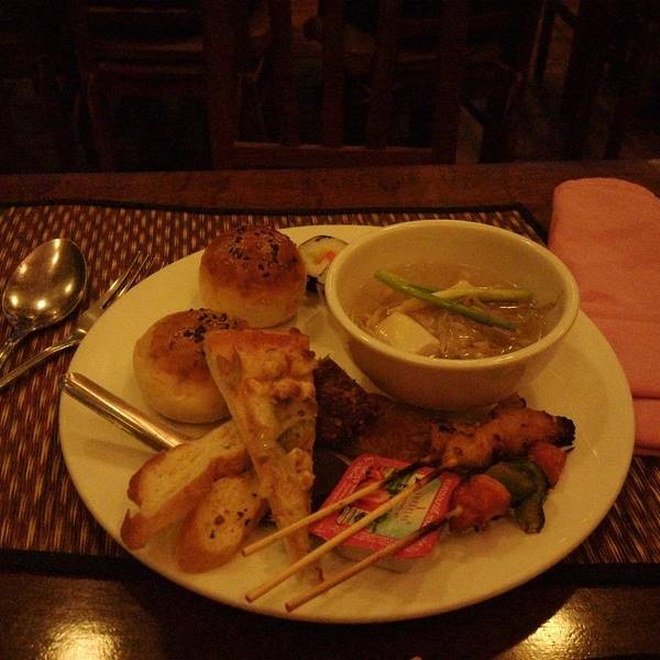 结束一天的旅程,强度依然不小,和阿东会合的第一天就提到想看高棉的本地舞蹈,我看到《吴哥的微笑》的广告到处都是,感觉甚好,却被阿东告知那是祖国的同胞演出的,心凉的不要不要的,阿东说,索性带你去一家不错的自助餐厅,那里还有不错的高棉演出。由于阿东给我们的服务确实到位,果断听取意见,看官们会说,这都是当地导游的道路,只要服务好,让人家多赚点又怎样呢?