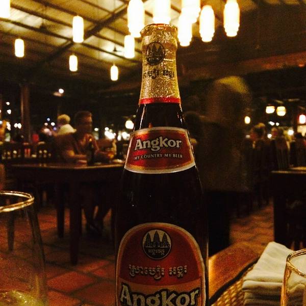如果是第一次到暹粒的话,这里可以算是首选餐厅,晚餐时间段,7点半到8点半之间有传统舞蹈表演,位置的话,餐馆就在lucky mall的对面,马路旁边,门口有两只很显眼的大象,很好找。晚餐是自助餐性质,需要提前预定,每位12刀,不包括酒水,以及10%的服务费。到暹粒的第一晚就麻烦包车司机定了第二天晚上的座位,因为司机是这里的常客,所以拿到了第一排的VIP座位。这个座位是在整体团餐宾客的前面,这里有4张方桌,是单独的VIP坐,座位离舞台非常近,这里唯一的缺点就是,传统表演开始前的乐队声音过大,大家彼此之前很难听清在说什么,餐厅的内部装璜很不错,整个空间非常空旷,黄色的吊灯有温馨舒服的光,唯一的缺点就是,虽然有风扇,但因为没有冷气,这里的蚊子非常多,来吃饭时务必带好防蚊水。整体来说,可能是因为海外游客太多,这里的食物比较偏中餐和西餐的自助餐感,除了米粉类的食物反倒少了当地的特色,不过选择还是挺多的。酒水部分要了青柠,以及一瓶Angkor superior beer,啤酒4.5刀,味道很清淡,像生啤,加点冰块的话,还是不错,妈妈非常喜欢。舞蹈部分来说,这里和张艺谋导的《吴哥的微笑》很相似,也是apsara的传统舞蹈表演,开始独舞的姑娘颜值非常棒,据说是这里头牌中的头牌,果然之后的,男女双人舞,依旧是这个姑娘,之后的小组舞蹈,可以看出这里的舞娘还是非常训练有素,大家的精神状态以及动作都非常到位、饱满,而渔夫舞的部分非常欢快,把整个晚餐的气氛一下推向了高潮,节目最后,所有的舞娘会再一次一字型排开,进行传统舞步的缓慢谢幕,导游、舞娘、我,来个合照,感觉一顿晚餐,有真正了解到很多暹粒的传统艺术文化,还是非常不错。