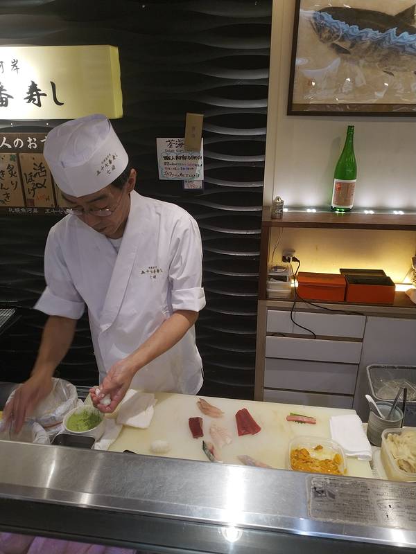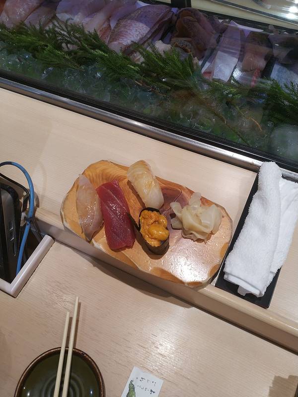 终于见到了正宗寿司。一共4000日元。没有座的,都是站着吃。这是我们点的一个套餐。机场的店就是这样的机场的店就是这样的终于见到了正宗寿司电影里见过的,手捏寿司没有座的,站着吃,衣服和包放到脚下的框里,不用担心会丢,点菜屏上有中文菜单没有座的,都是站着吃这是我们点的一个套餐一共4000日元
