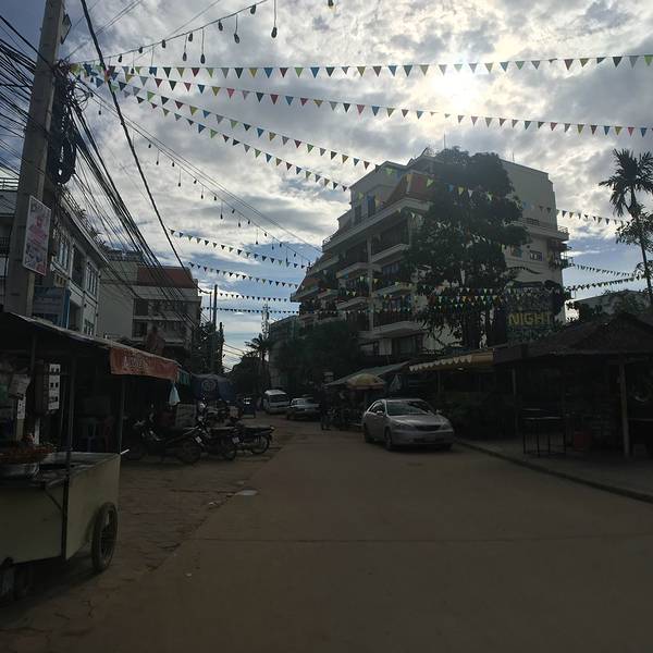 晚饭根据大众点评,在老街那边吃了一顿当地美食,在医院的正门口,馆子不大,但布置的很温馨。店员只会英语和柬埔寨语,菜单也都是英文菜单。不过有图片,还是很方便的。味道很不错,而且颜值也很高。很满意的一餐。晚上的老街很热闹,有酒吧街、夜市、挤满了人群。感觉还是歪果仁来这里的会比较多。