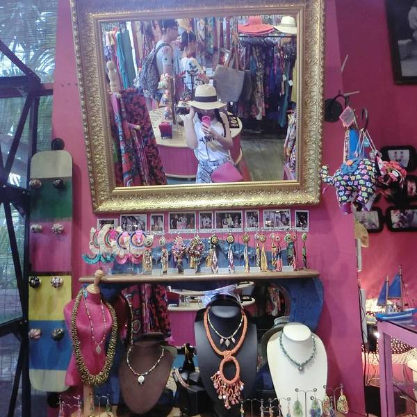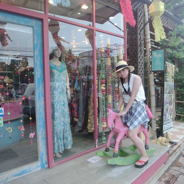 这家充满了泰国文化的精品小店,里面琳琅满目都是一些店家自己DIY出来的衣服,帽子首饰以及一些小的手工艺品!这家小店就正好在我们住的清迈梧桐酒店的隔壁,说是隔壁,其实就是把酒店的大堂隔出一个门面,然后很小的一个面积。坐在酒店茶餐厅里面就可以看到店里面的一些摆设!门口和其他的一些店一样,会摆出一些一日游的画册,和明信片之类的供游客看的!门口有一只非常标志性的粉红小木马。门口橱窗里面就展示了非常多,非常可爱的小玩意儿。有五彩斑斓的长颈鹿,猫咪还有最具有泰国特色的大象,有各种材质的,有布偶的,软陶的,树脂的。价格虽然要比夜市上的各种小工艺品要略贵一点,但是胜在这里的很多物件都是独一无二的,我们买了三只五厘米大小的大象,大概是240泰铢。在夜市的花,3只同等的大象大概只要150到200泰铢的样子。店老板是一个非常温柔热情的泰国美女说话非常的轻柔!会用中文说:“试试看!”里面的各种小的首饰也比夜市会贵很多,例如一条手工的项链在店里要400泰铢的,在夜市的话也就100泰铢左右! 交通:从清迈古城外,来这个店的话可以顺道看看盼道寺和契迪龙寺,因为真的是就在隔壁,所以如果坐突突车或者双条车来这里,司机不知道这家店的话,你可以告诉他你要去盼道寺,就OK了,双条车20泰铢,突突车50泰铢。如果本身就住在古城里面,那么可以先在地图上找到盼道寺或者契迪龙寺,就能找到这个店!另外周日夜市也是在这家店的门口哦!