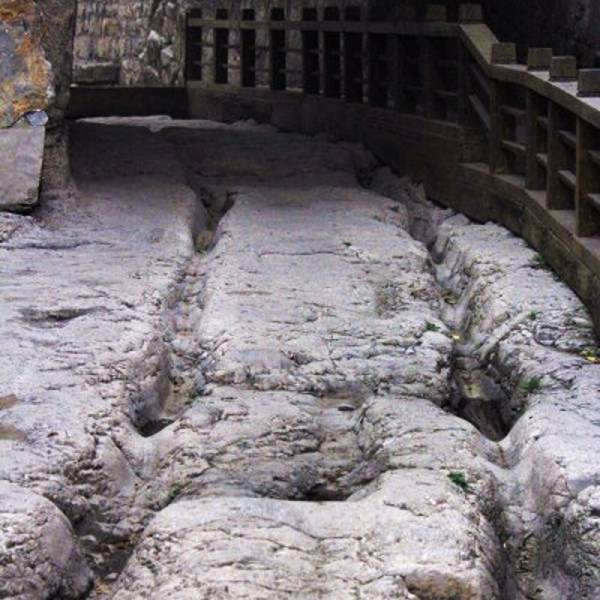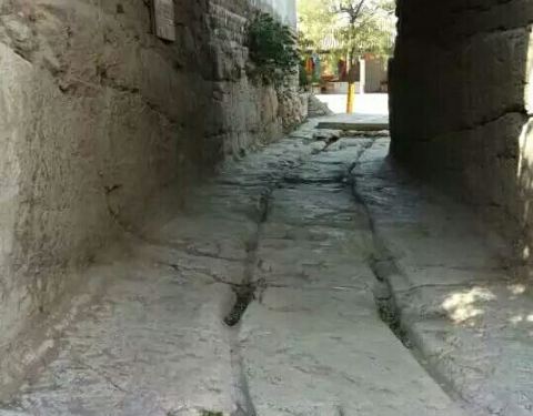 而且可以清晰的在路面上看到古时车轮碾压而成的一尺多深的车辙印记,这是“车同轨,书同文”的唯一历史见证