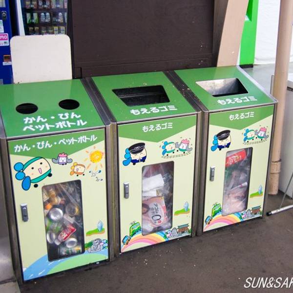 前面讲到因为买错票了,所以到达藤泽后立刻重新买了一张江之电的一日券,620円。这就是购买的窗口。为了不再犯错,我看了好久。小田急和江之电也不是一个系统的,所以要从上图的那个出口出站,购票窗口斜对面上楼,左转穿过天桥,进入另一栋建筑,往右走。就能看到历史感满满的江之电了。藤泽是江之电的起点站。之前看游记,奇葩的都对日本的马桶有专门的叙述,甚至还看过一片日本马桶序!我想说,除了马桶,这里的垃圾桶怎么没有人说?大家垃圾分类做的好好。