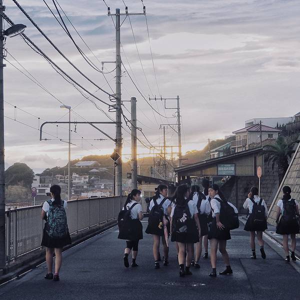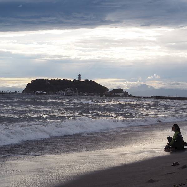 在海边行走一段到达著名的打卡胜地“镰仓高校站”。下午镰仓都是阴雨天,一直到最后云层里面才透出太阳光