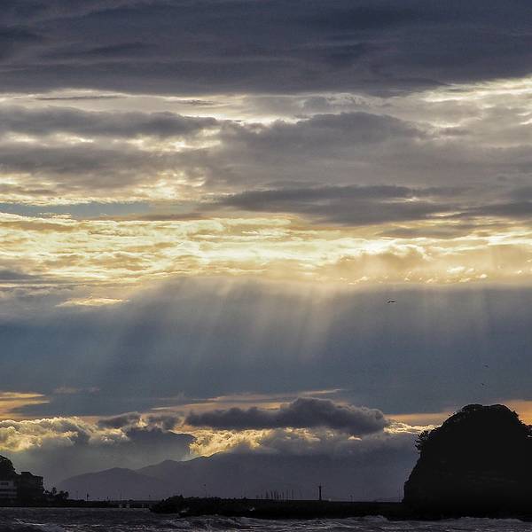 - 在海边行走一段到达著名的打卡胜地“镰仓高校站”。下午镰仓都是阴雨天,一直到最后云层里面才透出太阳光