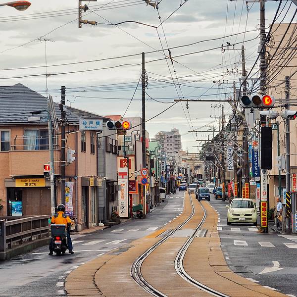 镰仓的街道,铁轨,巴士看起来都比别的地方要鲜艳透亮,连电线杆我都觉得是一道风景。