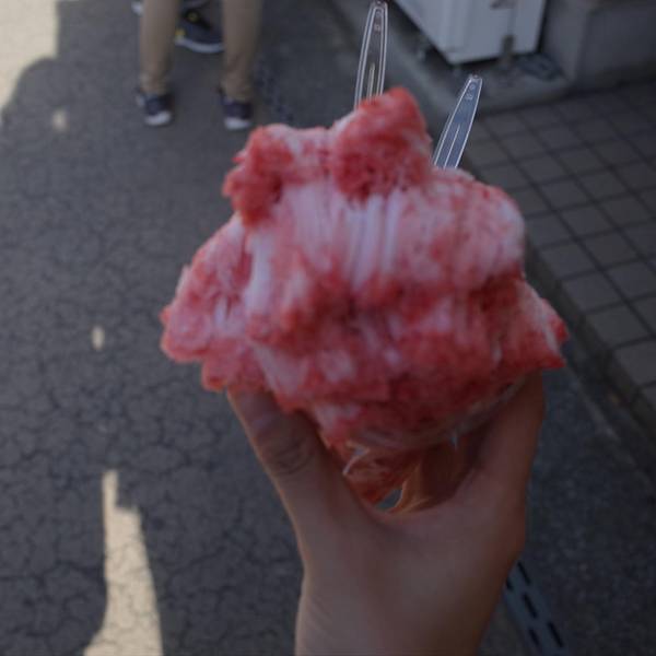 事实上,就像是旺旺雪饼淋上了酱油…不过价格也不贵,闻到的时候你还是会想试吃看看的- -走在街上看到有人捧着冰沙在吃,我和我朋友又心动了(觉得别人吃的东西看起来都很好吃的我俩)。店名不知道是啥,在下图这家店买的,其实其他人都在排队买那个小鱼形状的饼(然而我们已经饱了)我们点的草莓味的应该算是绵绵冰吧,完全是用草莓打出来的,好吃!解腻!还要夸一夸镰仓的景色,小町街的主街上人挤人,但是随便拐进一条小巷都特别好看,特别日式!好喜欢他们的民居啊,安静又好看,好想在这里养老QAQ在一个特别好看的房子门口拍了的,害怕主人出来拍完就赶紧跑哈哈哈哈哈最后!就是我们的撸柴体验了!
