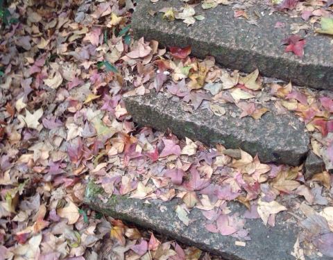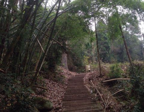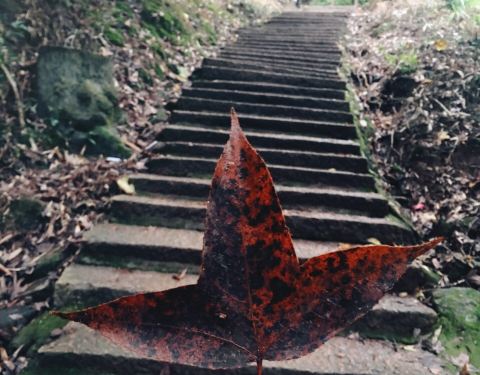 我从万豪酒店出门搭个三轮车,20块钱到大会岭景区,免门票,从岭脚一路爬上去,枫树大多落了,仅有的几株有点红红黄黄,最佳欣赏时间应该在12月中旬,不过还是从台阶上捡了些红枫。爬上去走走歇歇2个小时,下来用了一个小时,由于我是下午去的,整个岭上只见零散的几个路人,下来已经5点了。总体还是很赞的,有许多竹子,古道还在,红枫在心中想象吧。