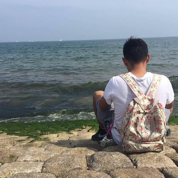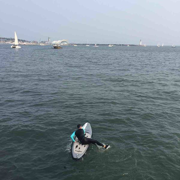 然后到了极限挑战救张艺兴的那个地儿下午三点多来到奥帆中心,遍地都是坐船的托儿,阿姨一直追着我们介绍船型,后来以“完成我今天的任务,给你们优惠价”的缘由,一人75上了单体帆。